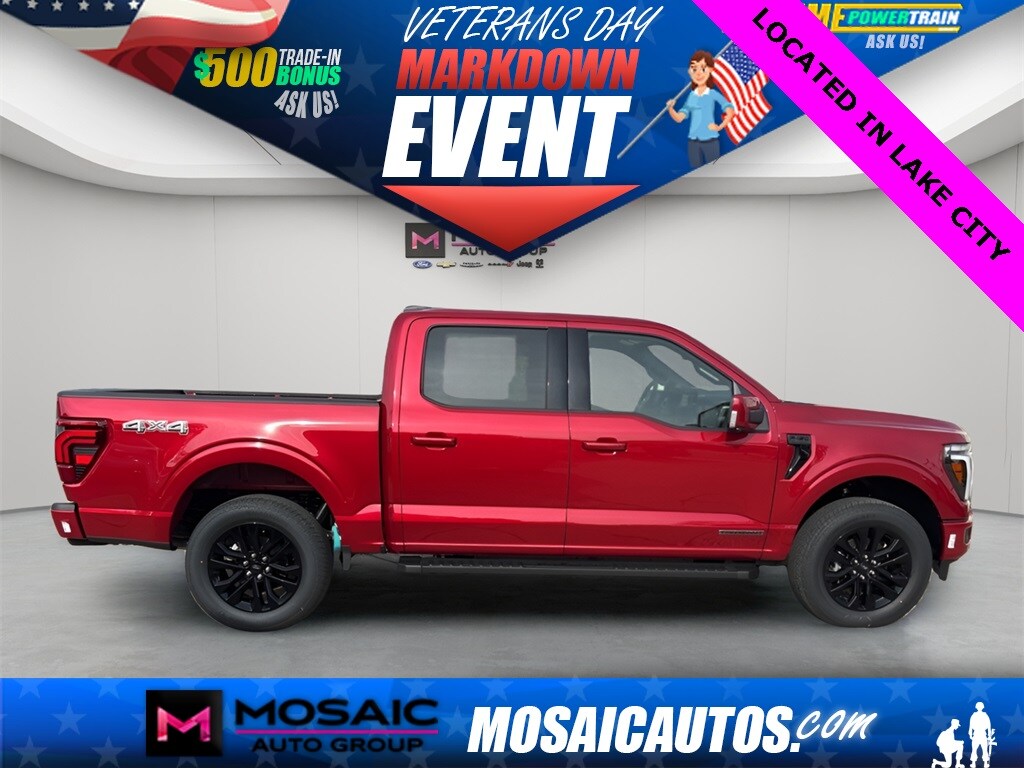 2025 Ford F-150 Lariat Rapid Red Metallic Tinted Clearcoat F-150 Lariat, 4D SuperCrew, 3.5L PowerBoost Full-Hybrid V6, 10-Speed Automatic, 4WD, Rapid Red Metallic Tinted Clearcoat, Black Premium Synthetic. Lariat Price includes: $1000 - Mega Bonus Cash. Exp. 12/17/2025