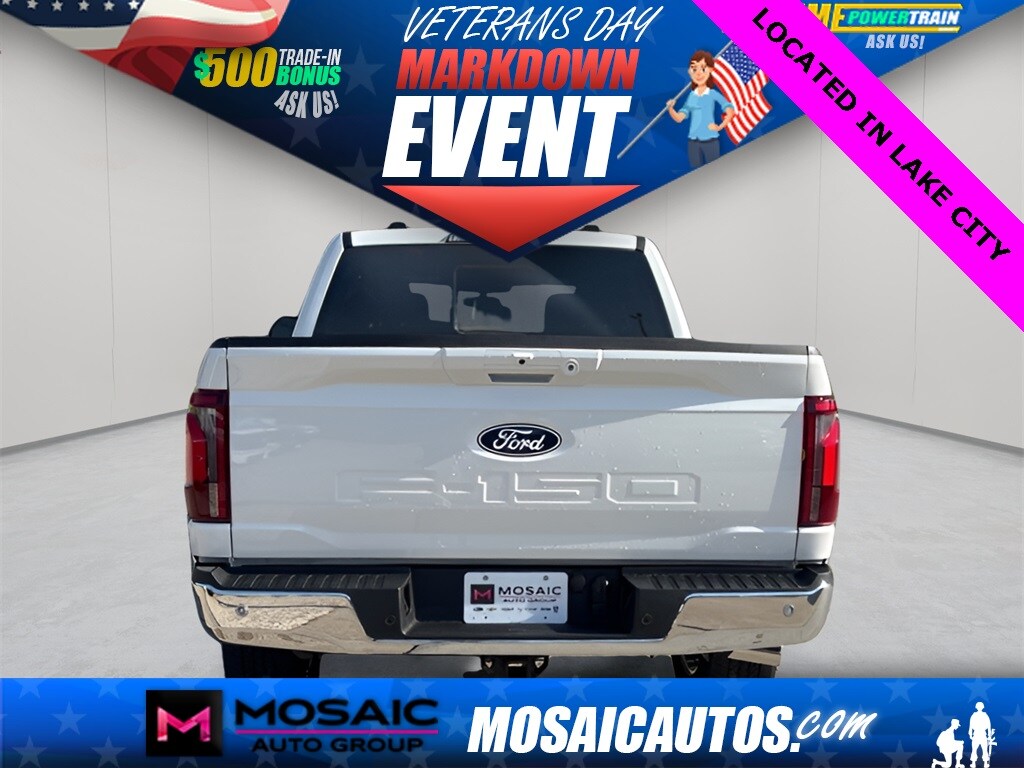 2025 Ford F-150 Lariat Star White Metallic Tri-Coat F-150 Lariat, 4D SuperCrew, 3.5L PowerBoost Full-Hybrid V6, 10-Speed Automatic, 4WD, Star White Metallic Tri-Coat, Black Premium Synthetic, 6" Angular Bright Anodized Step Bar, Equipment Group 501A Mid, Illuminated Driver & Passenger Visors, Integrated Trailer Brake Controller, Max Tow Electronic Locking w/3.73 Axle Ratio, Navigation system: Connected Navigation, Power-Sliding Rear Window, Tow/Haul Package, Wheels: 20" Chrome-Like PVD. Lariat Price includes: $1000 - Mega Bonus Cash. Exp. 12/17/2025
