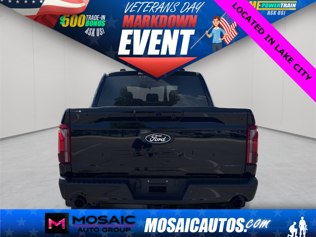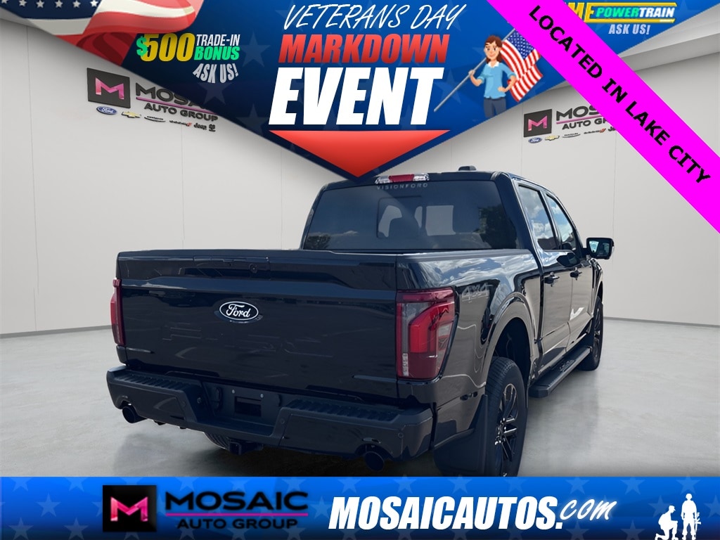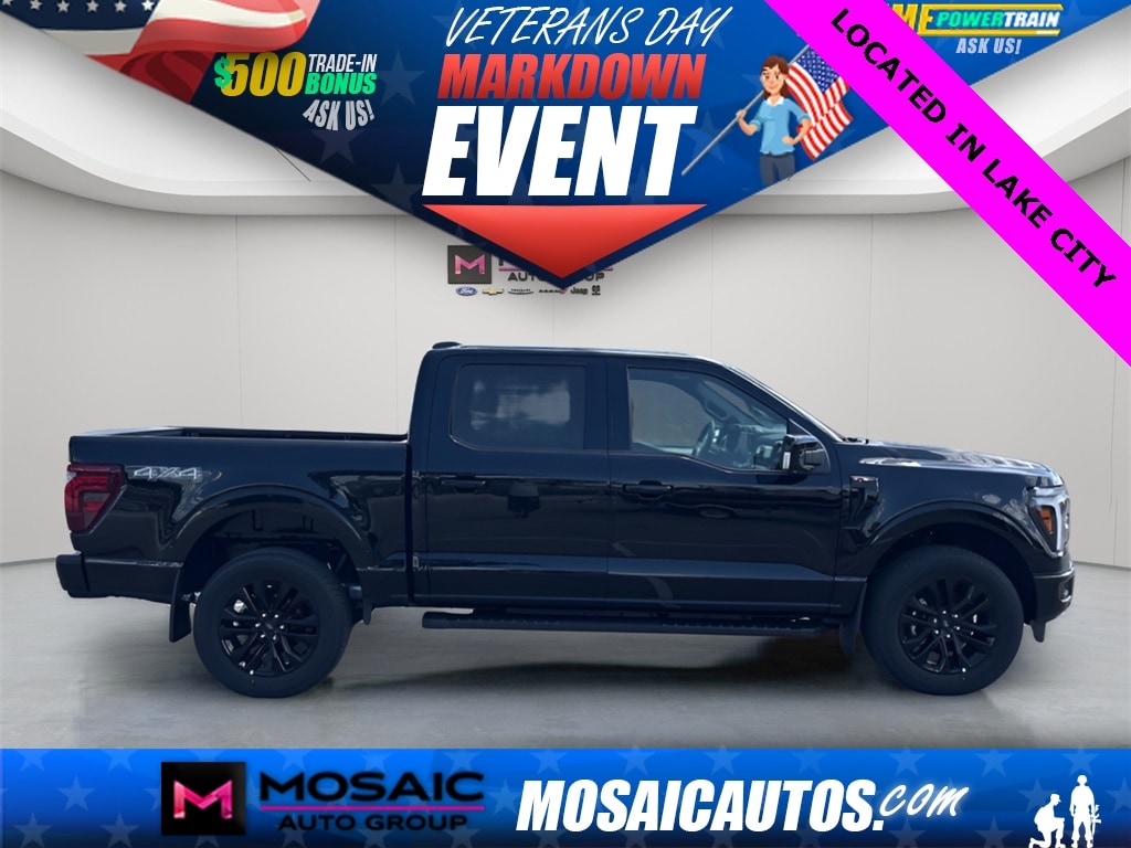 2025 Ford F-150 Lariat Agate Black Metallic F-150 Lariat, 4D SuperCrew, 3.5L V6 EcoBoost, 10-Speed Automatic, 4WD, Agate Black Metallic, Black Premium Synthetic, 6" Angular Bright Anodized Step Bar, ActiveX Trimmed Bucket Seats (B), Black Exterior Badging, Black Grille, Black Taillamp Bezels, Body-Color Front & Rear Bumpers, Body-Color Skull Caps & Door Handles, Dark Interior Appliques, Equipment Group 501A Mid, Gray Box Side Decal, GVWR: 7,100 lbs Payload Package, Illuminated Driver & Passenger Visors, Lariat Black Appearance Package, Matte Black Tailgate F-150 Decal, Navigation system: Connected Navigation, Power-Sliding Rear Window, Wheels: 20" Chrome-Like PVD. Lariat Price includes: $1000 - Mega Bonus Cash. Exp. 12/17/2025