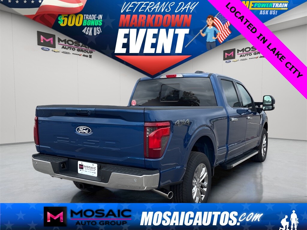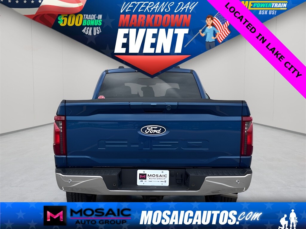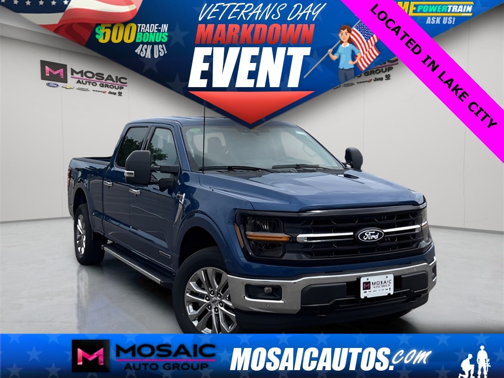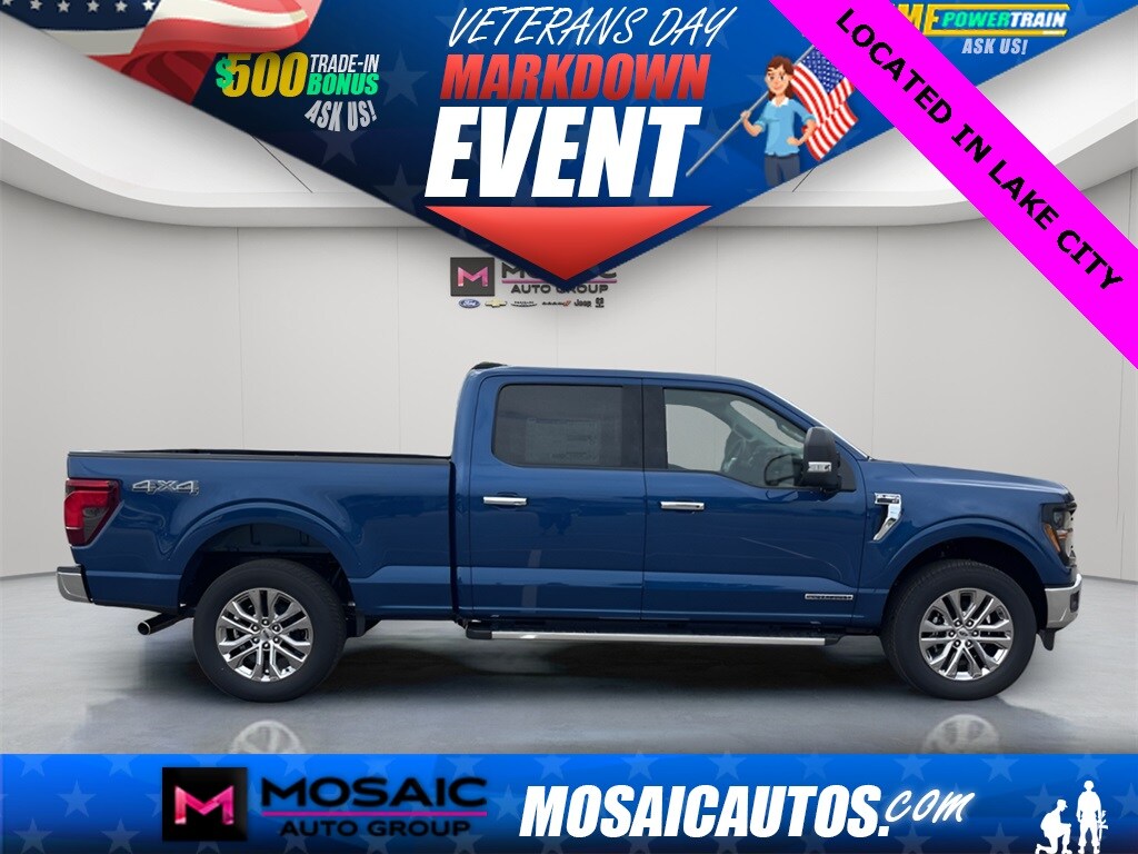 2025 Ford F-150 XLT Atlas Blue Metallic F-150 XLT, 4D SuperCrew, 3.5L PowerBoost Full-Hybrid V6, 10-Speed Automatic, 4WD, Atlas Blue Metallic, Black W/Medium Dark Slate Cloth, 360 Degree Camera, 4 Pickup Box Tie-Down Plates, 400W Cab & Bed Outlets, 6" Angular Bright Anodized Step Bar, Adaptive Cruise Control w/Stop & Go, Auto-Dimming Rear-View Mirror, Bed Utility Package, Black Painted Grille w/Chrome Center Bar, Chrome Door & Tailgate Handles, Chrome Single-Tip Exhaust, Cloth 40/Console/40 Front Seats, Connected Navigation, Console Worksurface, Driver State Detection, Dual-Zone Electronic Automatic Temperature Control, Equipment Group 302A Mid, Evasive Steering Assist, Ford Co-Pilot360 Assist 2.0, Front Parking Sensors, Heated Front Seats, Integrated Trailer Brake Controller, Intelligent Access w/Push Button Start, LED Box Lighting, Mobile Office Package, Partitioned Lockable Rear Storage, Power Glass Heated Sideview Mirrors, Power-Sliding Rear Window, Remote Start System w/Remote Tailgate Release, Tailgate Step w/Tailgate Work Surface, Tow/Haul Package, Towing Technology, Wrapped Steering Wheel. XLT Price includes: $1000 - Mega Bonus Cash. Exp. 12/17/2025 $1500 - Retail Bonus Cash. Exp. 01/05/2026