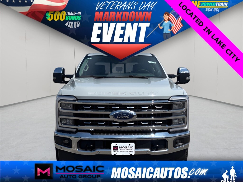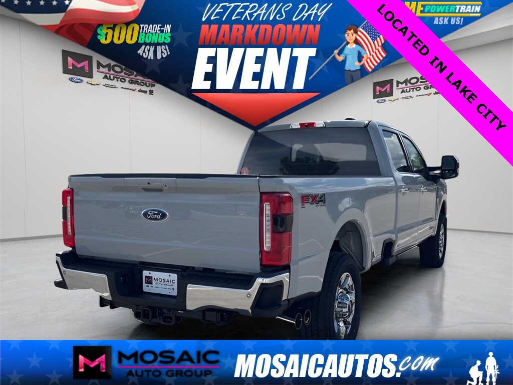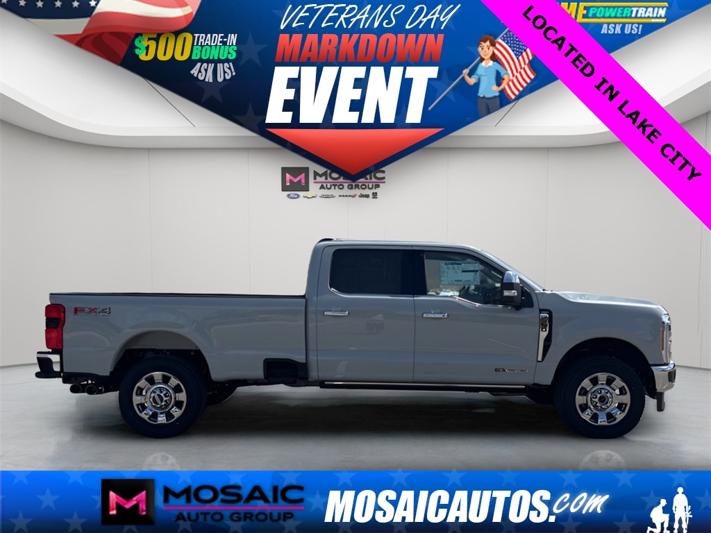 2025 Ford F-350SD Lariat Avalanche F-350 SuperDuty Lariat, 4D Crew Cab, Power Stroke 6.7L V8 DI 32V OHV Turbodiesel, 10-Speed Automatic, 4WD, Avalanche, Black Onyx w/Front ActiveX Seating Material 40/Console/40 Seats, 4-Way Adjustable Headrests, 5th Wheel/Gooseneck Hitch Prep Package, 6" Angular Bright Anodized Step Bars, ABS brakes, Alloy wheels, Chrome Door Handles, Chrome Exhaust Tip, Chrome Package, Compass, Electronic Stability Control, Front dual zone A/C, FX4 Off-Road Package, Head-Up Display, Heated door mirrors, Heated front seats, Heated rear seats, Hill Descent Control, Illuminated entry, Lariat Ultimate Package, Low tire pressure warning, Off-Road Specifically Tuned Shock Absorbers, Order Code 618A, Power passenger seat, Power-Deployable Running Boards, Privacy Glass, Pro Trailer Backup Assist, Pro Trailer Hitch Assist, Radio: B&O Unleashed Sound System by Bang & Olufsen, Remote keyless entry, Traction control, Unique Chrome Mirror Caps, Unique FX4 Off-Road Box Decal, Ventilated front seats, Wheels: 20" Chrome PVD Aluminum. Lariat