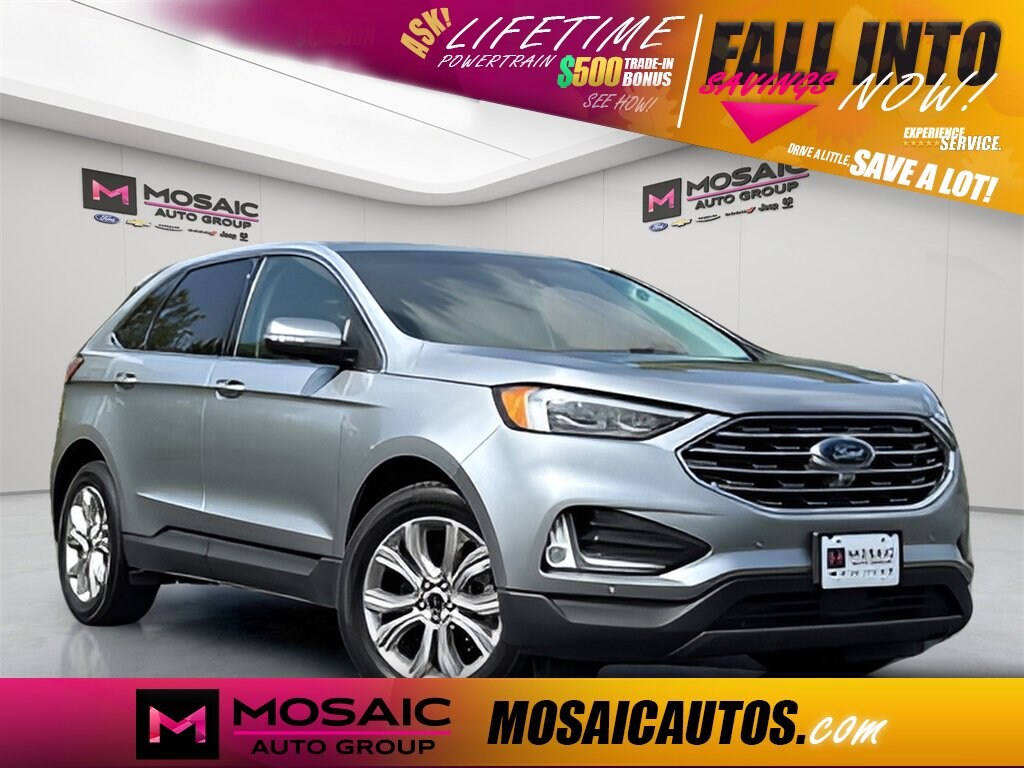 2023 Ford 4D Sport Utility Edge Titanium Silver Metallic Edge Titanium AWD, 4D Sport Utility, EcoBoost 2.0L I4 GTDi DOHC Turbocharged VCT, 8-Speed Automatic, AWD, Silver Metallic, ActiveX Trimmed w/FreeForm Sport Bucket Seats, Adaptive Cruise Control w/Stop & Go, Adaptive LED Headlamps, Auto-Dimming Driver's Sideview Mirror, Connected Built-In Navigation, Cooled Front Seats, Equipment Group 301A, Evasive Steering Assist, Front 180-Degree Camera w/Split View, Heated Rear Seats, Lane Centering, Power Tilt/Telescoping Steering Column w/Memory. EcoBoost 2.0L I4 GTDi DOHC Turbocharged VCT 8-Speed Automatic AWD