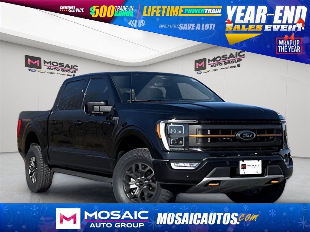 2023 Ford 4D SuperCrew F-150 Tremor Black F-150 Tremor 4X4, 4D SuperCrew, 3.5L V6 EcoBoost, 10-Speed Automatic, 4WD, Black, Black w/Leather-Trimmed Bucket Seats, ABS brakes, Alloy wheels, Compass, Electronic Stability Control, Front dual zone A/C, GVWR: 7,050 lbs Payload Package, Heated door mirrors, Heated front seats, Illuminated entry, Low tire pressure warning, Navigation system: Connected Navigation, Radio: AM/FM SiriusXM w/360L, Remote keyless entry, SYNC 4 w/Enhanced Voice Recognition, Traction control. 3.5L V6 EcoBoost 10-Speed Automatic 4WD