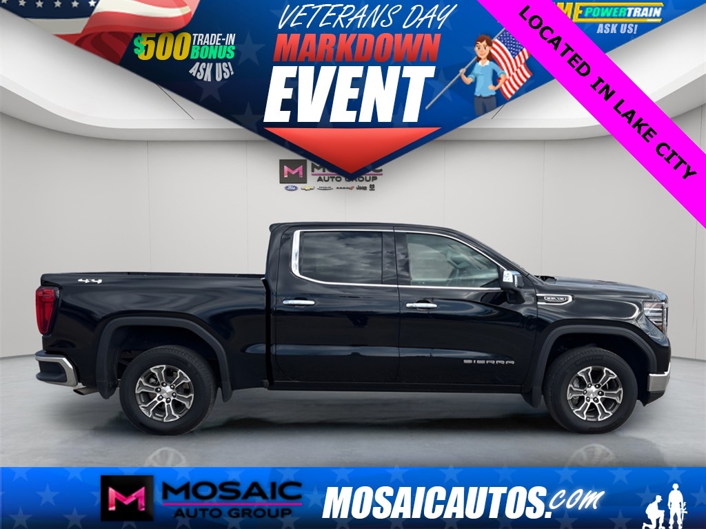 2024 GMC 4D Crew Cab Sierra 1500 SLT Onyx Black Sierra 1500 SLT, 4D Crew Cab, EcoTec3 5.3L V8, 10-Speed Automatic, 4WD, Onyx Black, Jet Black w/Leather-Appointed Seat Trim, Hitch Guidance, Navigation System, Standard Suspension Package, Trailering Package. EcoTec3 5.3L V8 10-Speed Automatic 4WD
